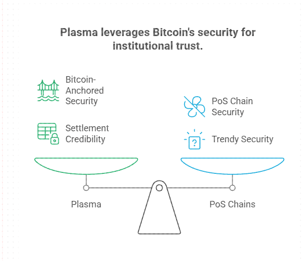 Bitcoin tiene una historia de dieciséis años sin romperse. Ninguna cadena PoS puede decir eso. Plasma está tomando prestada esa credibilidad en lugar de intentar inventarla.