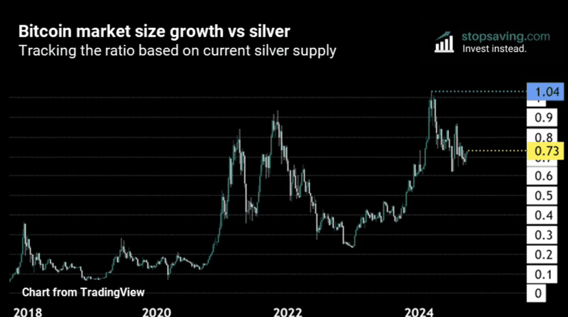 Nov/2024: la capitalización de mercado de Bitcoin llegó a superar la de la plata por un breve período — choque simbólico.