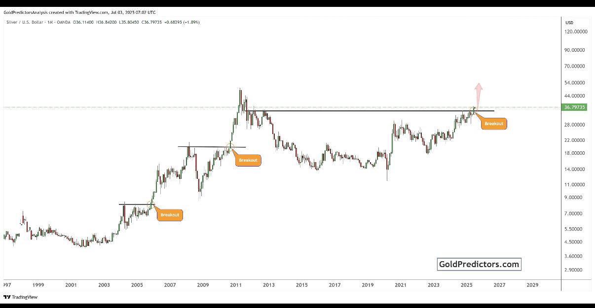 La plata suele moverse fuerte antes de que el capital migre a activos más “volátiles monetarios”.
