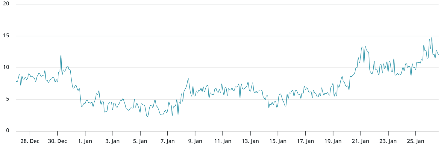 De manera similar, la desviación delta de opciones de BTC alcanzó el 12% el lunes. Esto indica que las opciones put (venta) se están negociando a una prima, reflejando una fuerte renuencia entre los traders a mantener exposición a la baja. En un mercado neutral, este indicador generalmente fluctúa entre -6% y +6%. La última vez que la desviación alcanzó estos niveles fue el 1 de diciembre, cuando Bitcoin se desplomó de $91,500 a $83,900 en solo unas pocas horas.