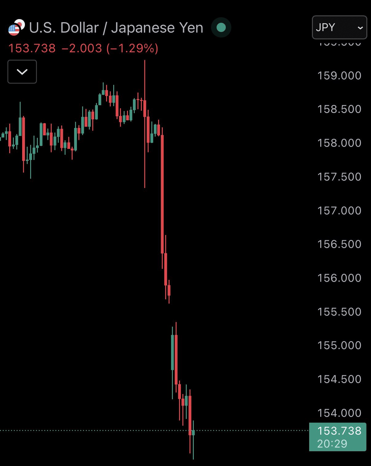 💱 USD/JPY colapsó de 260 → 120