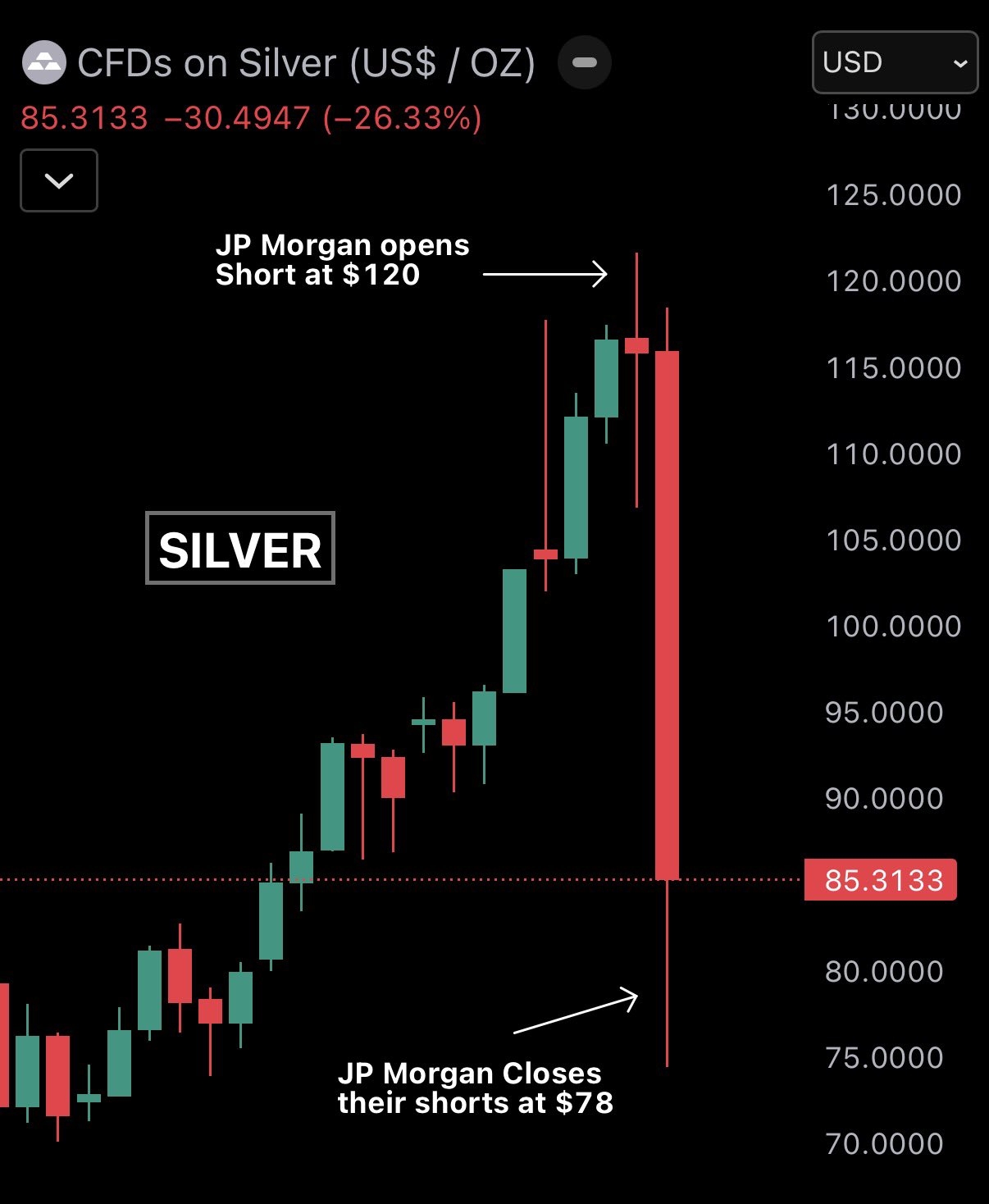 JPMorgan es uno de los mayores participantes de COMEX, activo tanto en futuros de papel como en plata física. Esta doble exposición significa que los movimientos violentos en mercados apalancados benefician a los jugadores que pueden soportar la presión de margen, mientras que otros son expulsados.