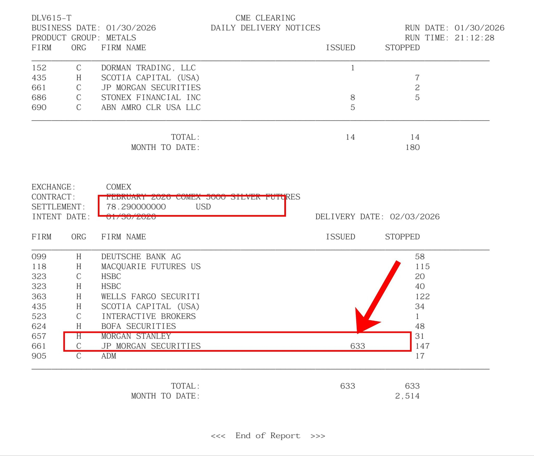 • La entrega de COMEX muestra a grandes bancos tomando entrega durante la venta masiva