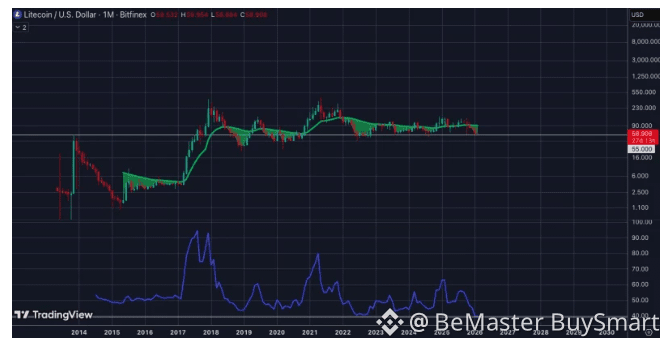 $LTC Litecoin is hovering near the critical $55 support level following a prolonged decline, with monthly RSI indicators hitting their lowest reading ever recorded for the asset.
