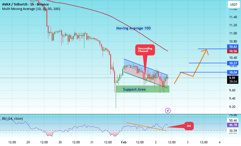 Hay una zona de soporte clave en verde en 9.61, y el precio ha rebotado desde este nivel varias veces. Se espera otro rebote.