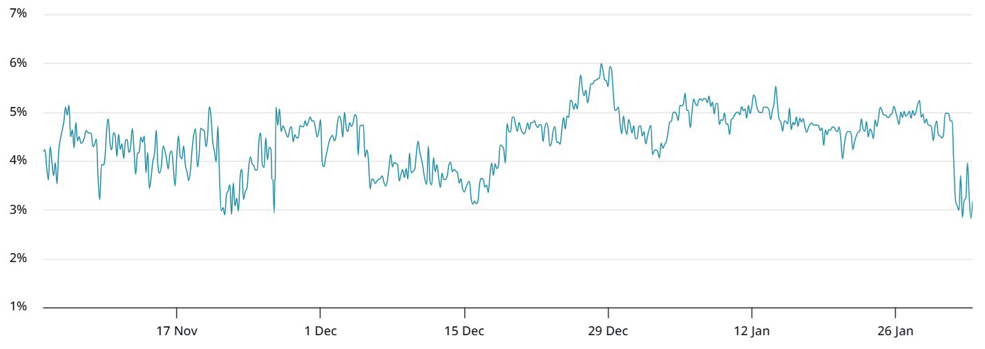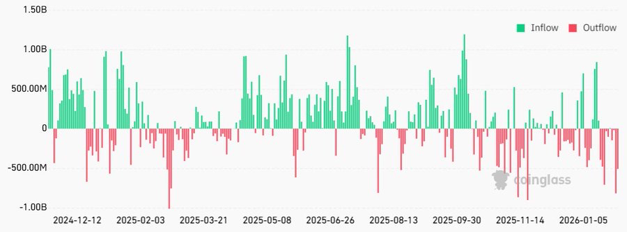 Las preocupaciones de los comerciantes aumentaron después de que los fondos ETF de Bitcoin al contado registraron 3,2 mil millones de dólares en salidas netas desde el 16/1. Sin embargo, esta cifra representa menos del 3% del total de activos bajo gestión. La empresa Strategy (MSTR) también se vio afectada por rumores infundados cuando sus acciones se negociaron por debajo del valor de activos netos (NAV), lo que generó preocupaciones de que la compañía podría vender parte de los Bitcoin que posee.