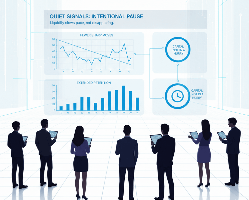 No noté la liquidez saliendo todo de una vez. Lo que llamó mi atención fue el silencio. Menos movimientos bruscos, menos salidas apresuradas y una sensación de que el capital ya no tenía prisa. En mercados como este, la quietud no es aburrimiento, es intención. Cuando la liquidez desacelera su ritmo en lugar de desaparecer, a menudo señala un cambio en cómo los participantes están pensando sobre el riesgo y el tiempo.