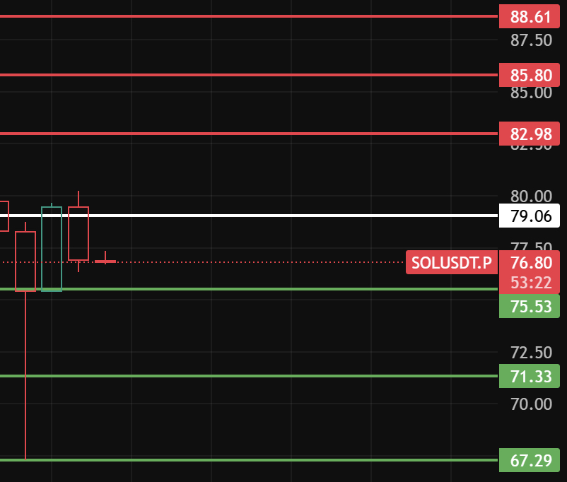 Si hoy no se mantiene por encima de 79, significa que el rebote de bajo nivel no tiene fuerza. Sigue hacia abajo y presta atención a los niveles de soporte 75-71-67 cerca de esos niveles. #solana
