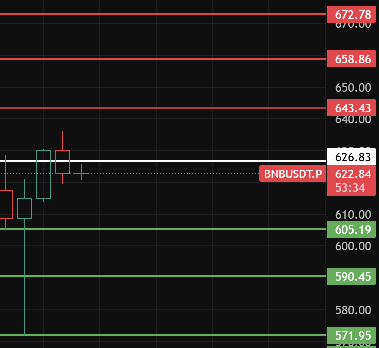 Si hoy no se mantiene por encima de 626, significa que el rebote de bajo nivel no tiene fuerza. Sigue hacia abajo y presta atención a los niveles de soporte 605-590-572 cerca de esos niveles. #BNB走势