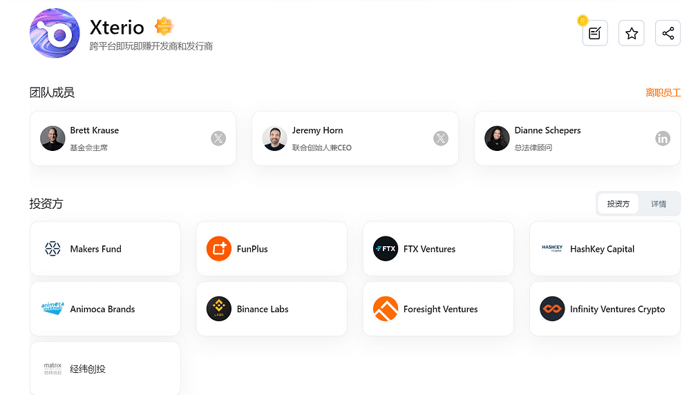 Inversores en Xterio: Binance Labs, Animoca Brand, HashKey, Foresight Ventures, Infinity Ventures Crypto y Matrix Partners.