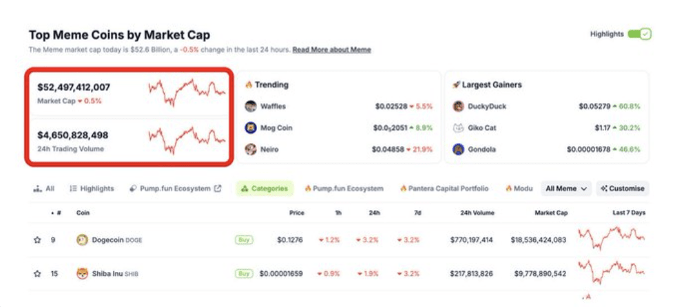 Actualmente, el valor de mercado del sector de la “moneda meme” ha superado los 53 mil millones de dólares.