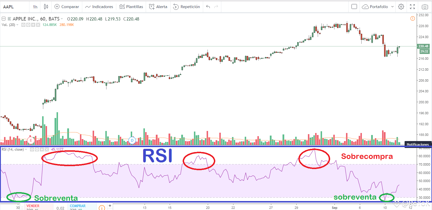 Por debajo de 30: ahora estamos en territorio de “sobreventa”; es como descubrir una joya escondida en una caja de ofertas. Cuando el RSI cae por debajo de 30, el mercado está diciendo: “Esto ha sido golpeado, pero tal vez, solo tal vez, sea el momento de una recuperación”. Tenga en cuenta que, a veces, la caída puede seguir bajando.