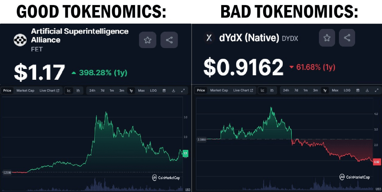 Los tokens con la peor tokenomics pueden caer en el olvido, mientras que los proyectos con una tokenomics decente pueden llegar a cero.