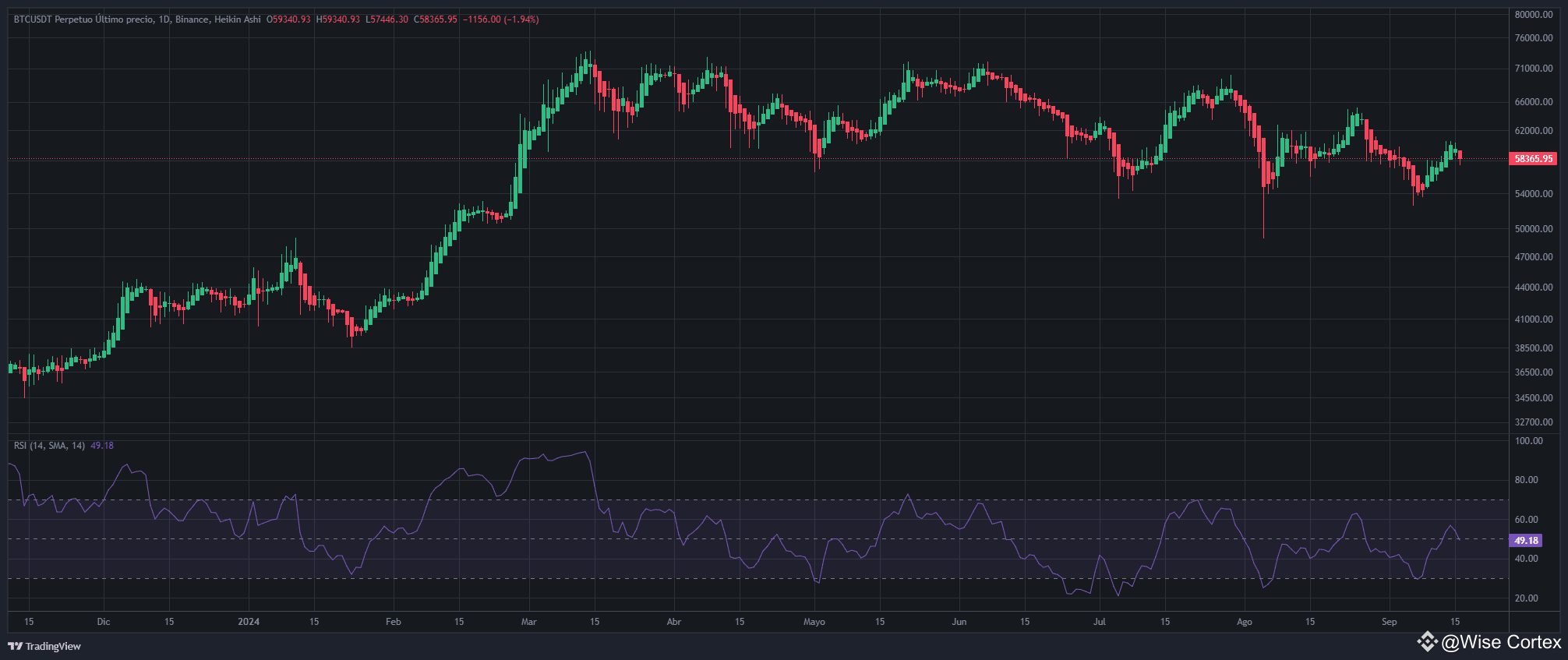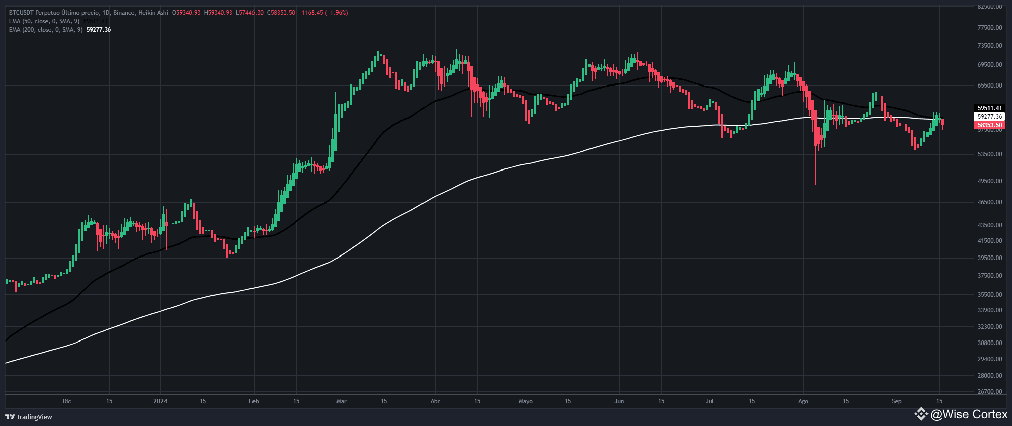 💡 Análisis actual (Septiembre 2024):Esta semana, el 17 y 18 de septiembre de 2024, la Fed podría anunciar un recorte de tasas de interés, lo que tendría un gran impacto en el mercado de criptomonedas. Se espera que la Fed reduzca las tasas en 25 puntos básicos (0.25%), lo que podría generar mayor liquidez y eventualmente impulsar el precio de Bitcoin. Sin embargo, los analistas advierten que si el recorte es más agresivo, de 50 puntos básicos, el mercado podría interpretarlo como una señal de "pánico", lo que podría debilitar el precio de Bitcoin. Actualmente, Bitcoin lucha por mantenerse por encima de los $58,000, y el comportamiento posterior a la decisión de la Fed será crítico para definir la tendencia a corto plazo