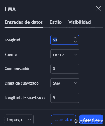 Hacé clic en el ícono de "Opciones de configuración" para ajustar el período de la EMA.