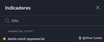 En el cuadro de búsqueda de indicadores, escribí "EMA". Luego, seleccioná la opción "Media móvil exponencial" para agregarla al gráfico.