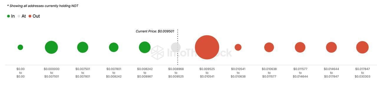 Los poseedores de Notcoin que compraron NO a precios entre $0,0095 y $0,012 ahora están incurriendo en pérdidas. Si el activo vuelve a alcanzar los 0,012 dólares, se obtendrán beneficios de 62 mil millones de tokens.