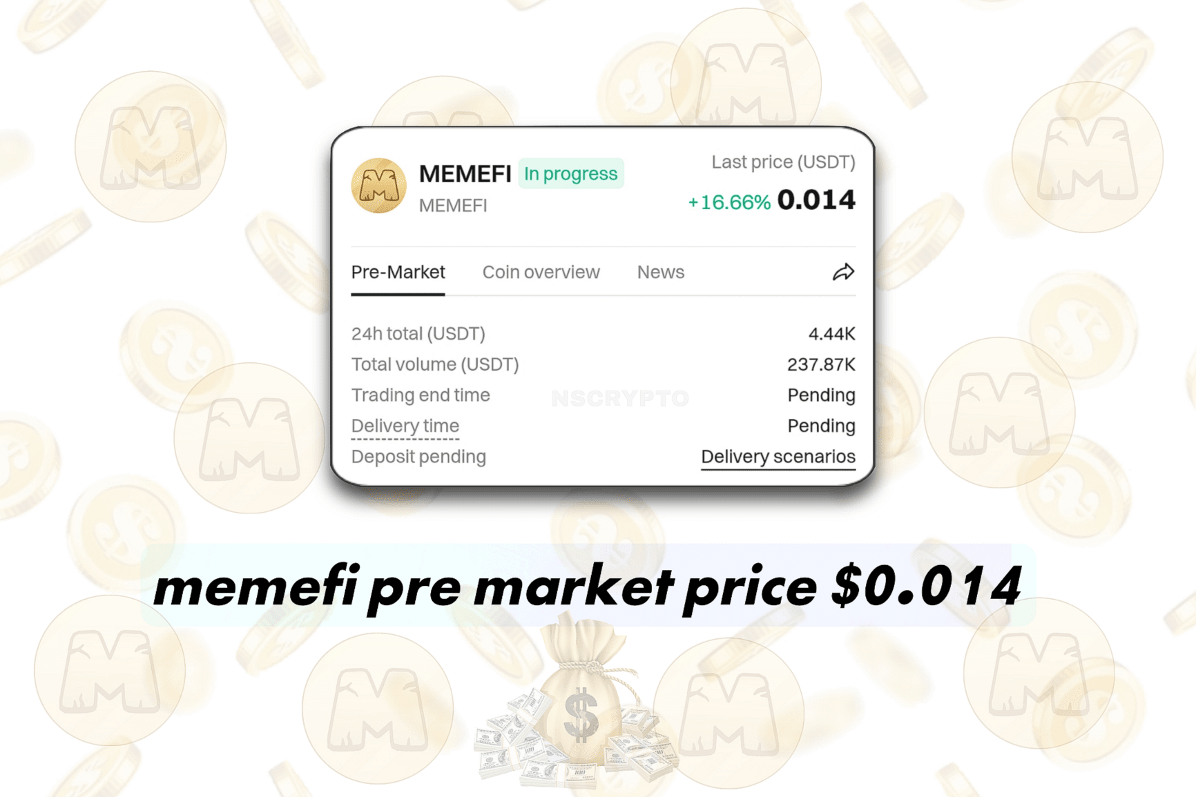 Memefi se cotiza actualmente a un precio de precomercialización de $0,014. Este valor indica el precio al que los tokens de Memefi están disponibles para su comercialización antes de que se incluyan oficialmente en las principales bolsas. La fase previa a la comercialización suele ser un período en el que los inversores pueden comprar tokens a un precio más bajo antes de que comience la negociación pública, lo que permite a los primeros partidarios participar a una tasa potencialmente más favorable. El precio de $0,014 sugiere una valoración inicial que podría ser atractiva para aquellos que buscan invertir en las primeras etapas del proyecto, suponiendo que haya confianza en el potencial a largo plazo de Memefi. Como ocurre con cualquier inversión, es esencial investigar los fundamentos del proyecto, el equipo y las condiciones del mercado antes de asumir cualquier compromiso financiero.