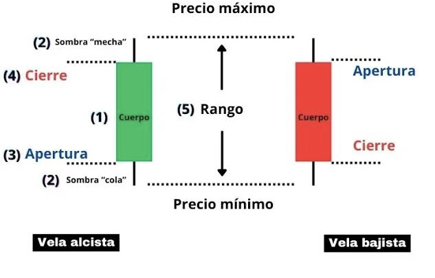 Cada vela en el gráfico corresponde a un período de tiempo elegido, minutos, horas, días o semanas.