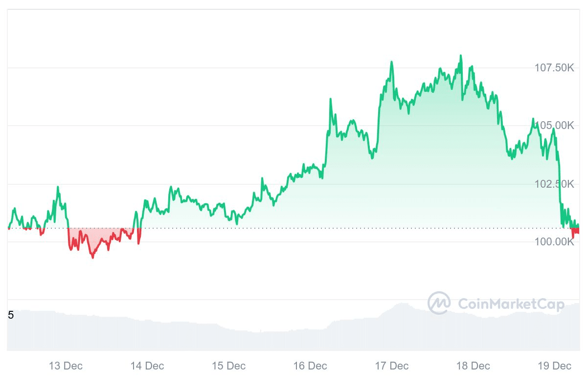 Los comentarios de Powell, junto con un tono más cauteloso de la Reserva Federal, provocaron una fuerte caída en el valor de Bitcoin. La criptomoneda cayó un 5.9% a $100,605, retrocediendo de su máximo histórico de $108,000 establecido el 18 de diciembre. El mercado de criptomonedas en general también experimentó una caída, con su capitalización total cayendo un 7.6% a $3.67 billones. Ethereum, XRP y Solana registraron pérdidas que oscilan entre el 4% y el 11%.