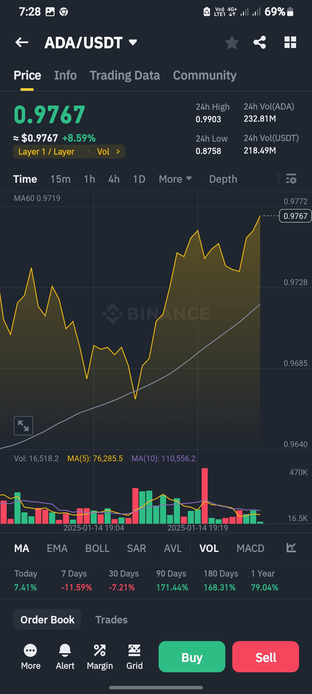 Con el evento de liquidación en $0.971, ADA ha demostrado resiliencia al superar niveles críticos. Los traders ahora tienen que observar cómo reacciona el mercado en las próximas horas. Si el precio se mantiene por encima de este nivel y continúa subiendo, podría haber más liquidaciones en el futuro, posiblemente creando un efecto de bola de nieve que podría impulsar los precios aún más. Por otro lado, si la presión de compra se desvanece, el mercado puede volver a una tendencia más estable. De todos modos, la reciente liquidación muestra cuán volátil puede ser el mercado, brindando grandes oportunidades para aquellos listos para aprovechar las olas del cambio.