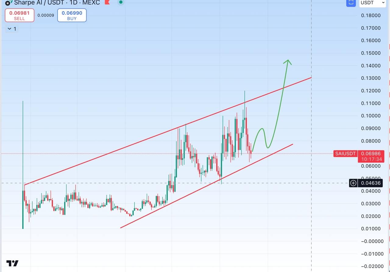 El gráfico diario de Sharpe AI ( #SAI ) actualmente está en tendencia dentro de un canal ascendente, mostrando un crecimiento constante. 📈