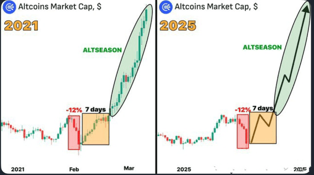 Con las condiciones del mercado reflejando principios de 2021, los traders están observando con ansias el próximo auge de altcoins. $BTC La recuperación gradual de Bitcoin y la acumulación de ballenas de altcoins clave sugieren que una poderosa recuperación puede estar en el horizonte. Si la historia se repite, podríamos ver un aumento explosivo en criptomonedas alternativas una vez que Bitcoin se estabilice.