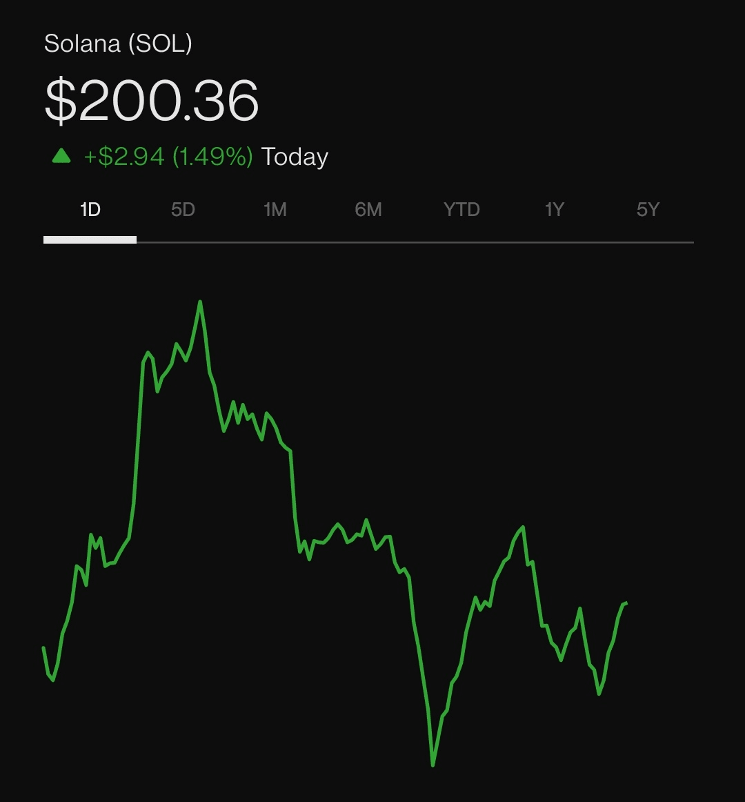A partir del 10 de febrero de 2025, Solana (SOL) se está negociando a aproximadamente $200.36, reflejando un ligero aumento del 0.01489% desde el cierre anterior.