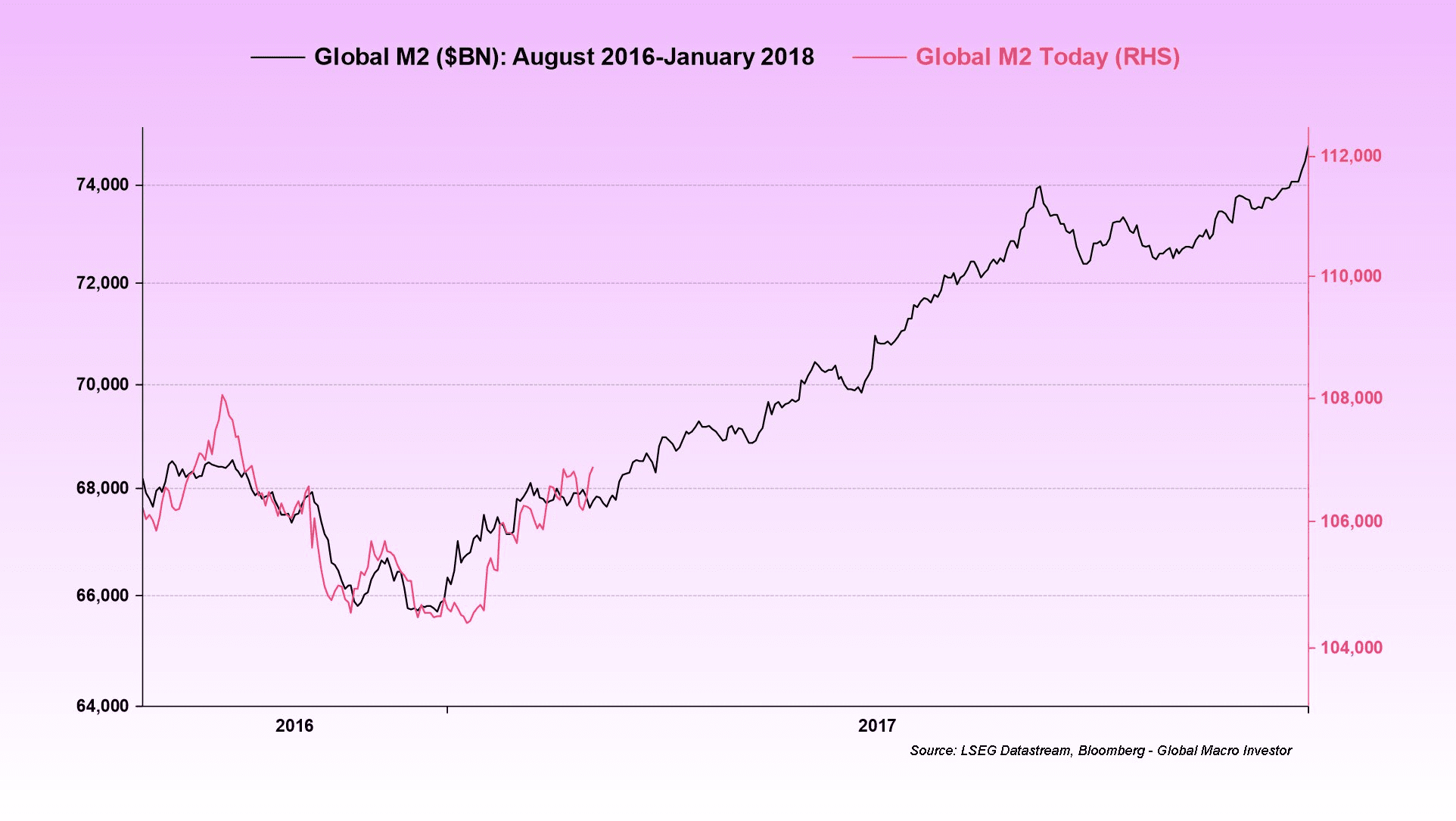 📌Cuando la oferta de dinero M2 aumenta, los activos de riesgo como las acciones y Bitcoin suben, no inmediatamente, puede que sean dos meses y medio según la historia.