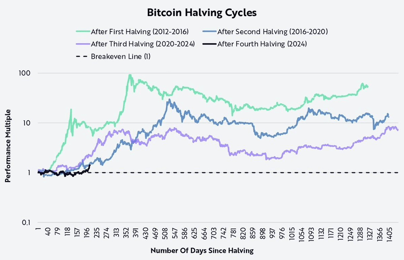 Históricamente, $BTC aumenta aproximadamente 330 días después de cada reducción, desencadenando una explosiva temporada de altcoins cuando las monedas de baja capitalización muestran enormes ganancias.