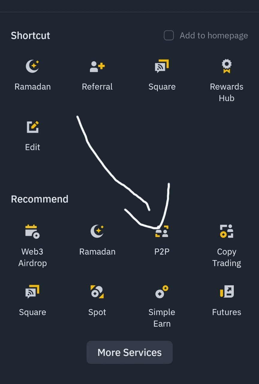 Puedes encontrar una opción p2p allí. "Si tu opción p2p no está en la parte superior, puedes hacer clic en "Más servicios" para encontrarla.