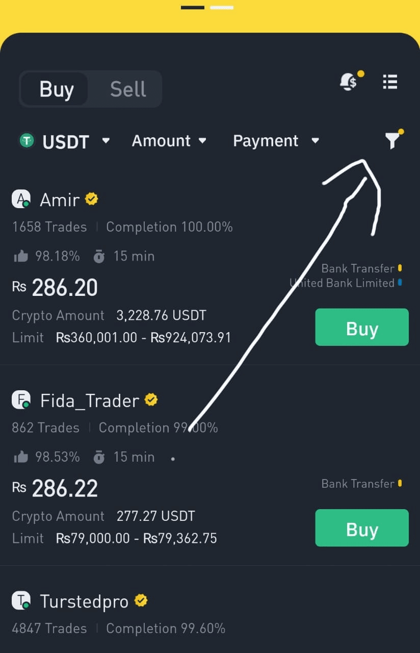 Antes de presionar el botón de comprar, te sugeriría que operes solo con comerciantes verificados de Binance. Son aquellos que tienen una "marca de verificación amarilla verificada". Tu comercio p2p será mucho más seguro con estos comerciantes verificados y luego puedes comprobar su tasa de finalización y el número de órdenes que completaron en los últimos 30 días.
