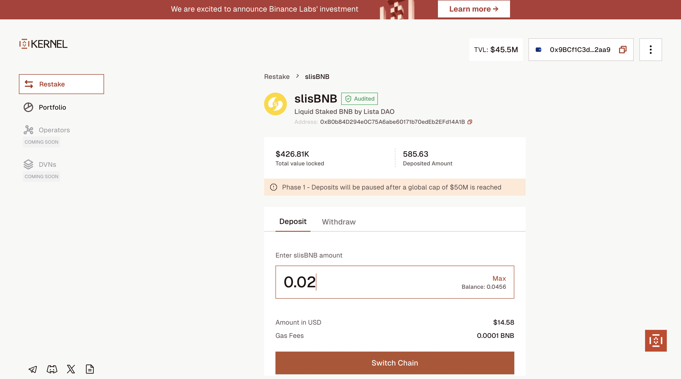 Restaking en BNB (Kernel)