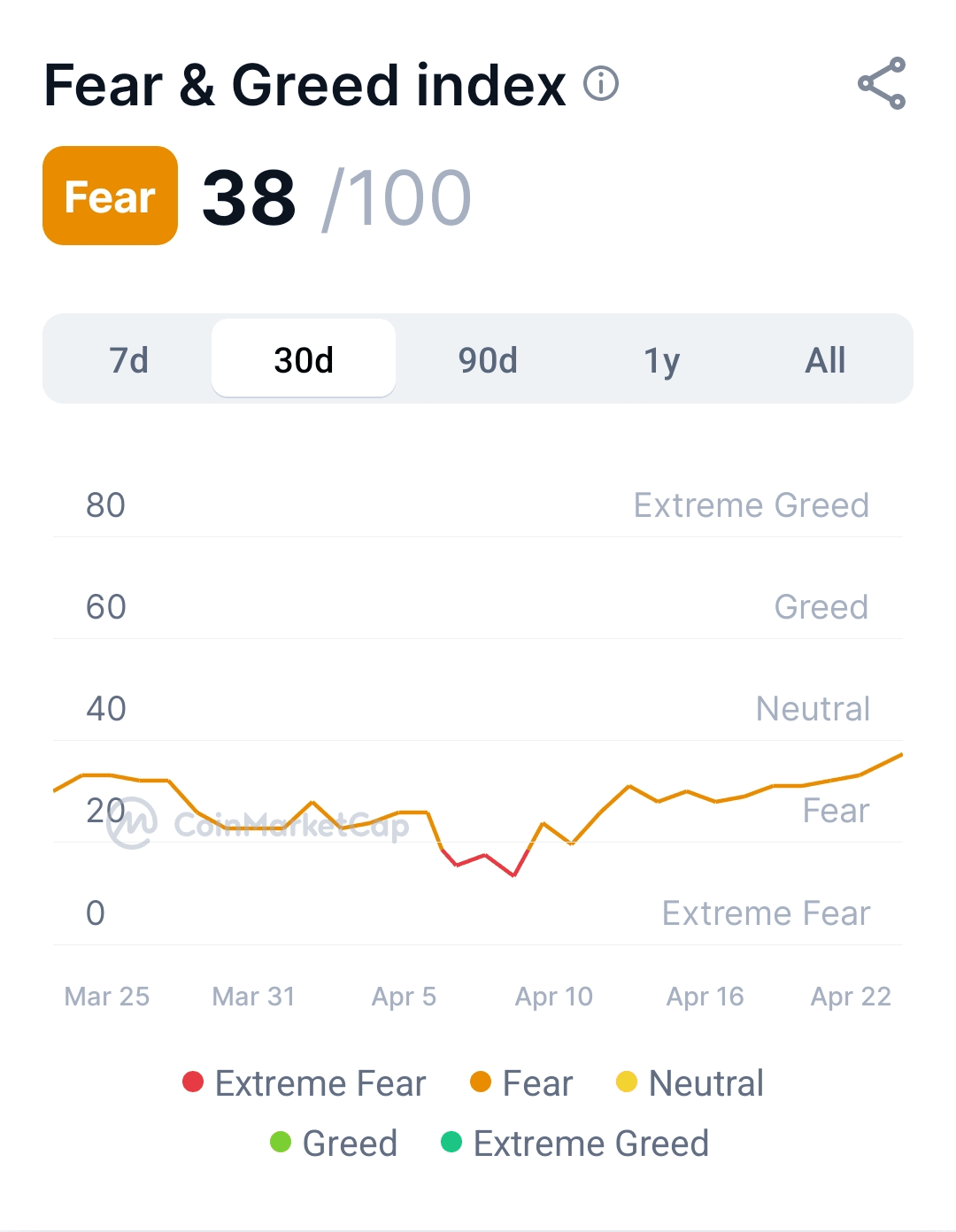 📊 Gráfico del Índice de Miedo & Codicia destacando el Miedo 𝟯𝟴/𝟭𝟬𝟬