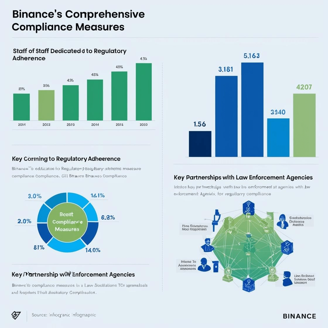 Binance ha reforzado significativamente su infraestructura de cumplimiento, empleando alrededor de 1,500 empleados dedicados a la adhesión regulatoria. La empresa ha implementado medidas correctivas sustanciales, incluida una cooperación mejorada con agencias de aplicación de la ley global y el intercambio proactivo de inteligencia para combatir actividades ilícitas.