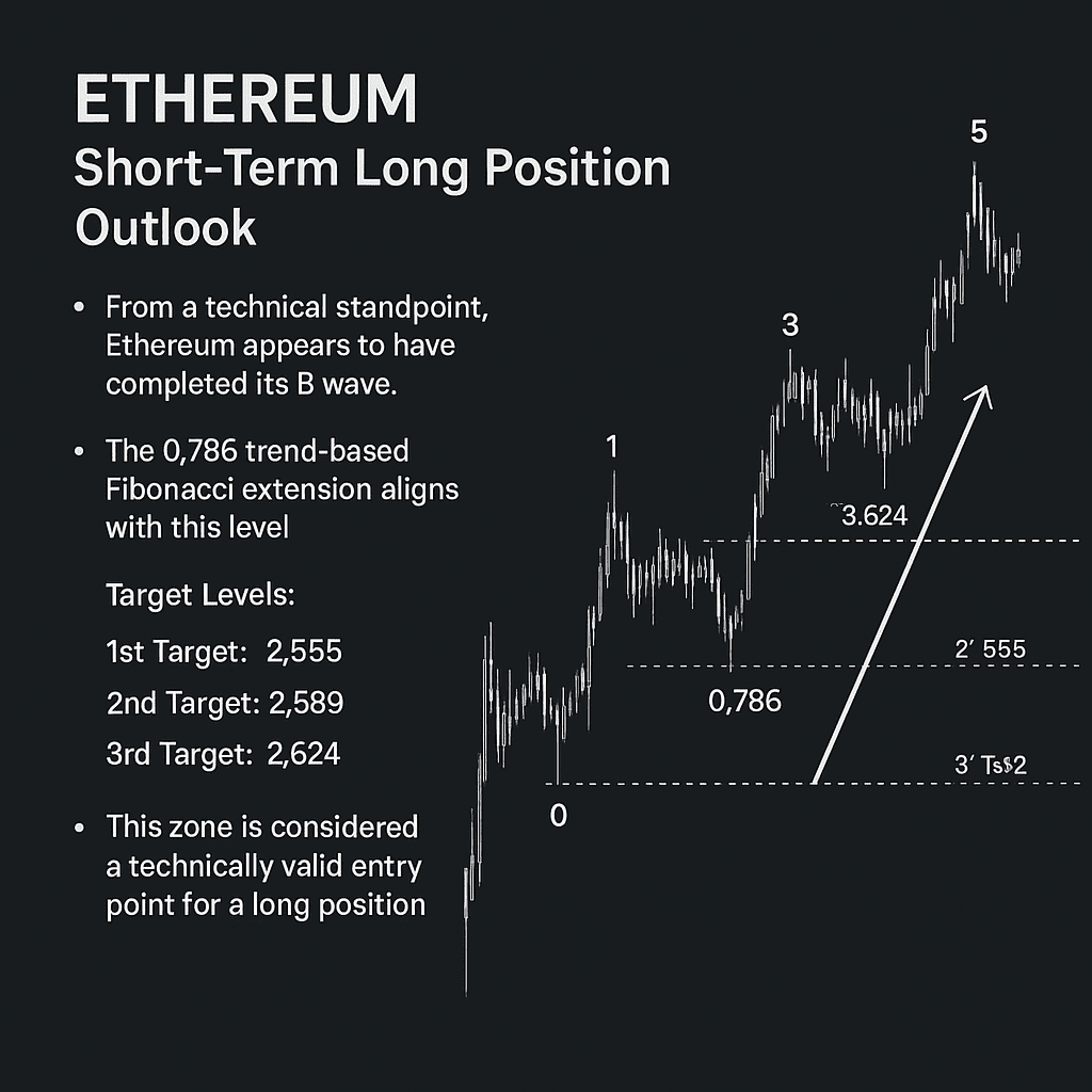 Desde una perspectiva de análisis técnico, Ethereum parece haber completado su ola correctiva B. Usando herramientas de extensión de Fibonacci basadas en tendencias, la ola B termina cerca del nivel de extensión 0.786. Esta proporción, desarrollada y refinada por el equipo de Seovereign, ha demostrado una precisión constante en aplicaciones en vivo del mercado.