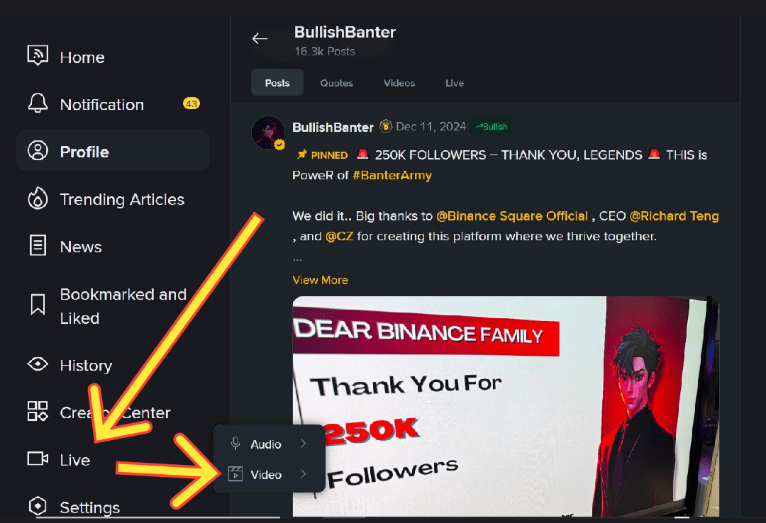 Eso es todo: ¡ya estás EN VIVO en Binance Square!