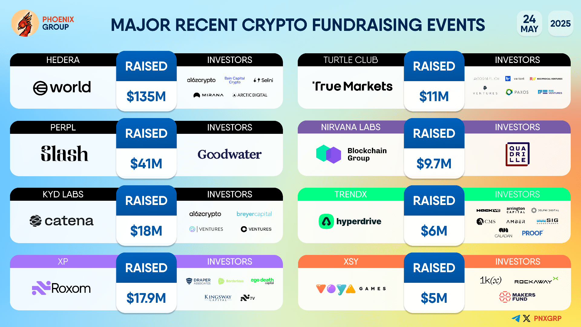 * TRENDX ($6 millones recaudados): TRENDX recibió $6 millones de inversores, incluyendo Hyperdrive, Hashed, Arlington Capital X, CMS, Amber Group, Old Fashion Research y Proof. Este financiamiento probablemente impulsará su crecimiento y desarrollo de plataforma en su nicho respectivo.