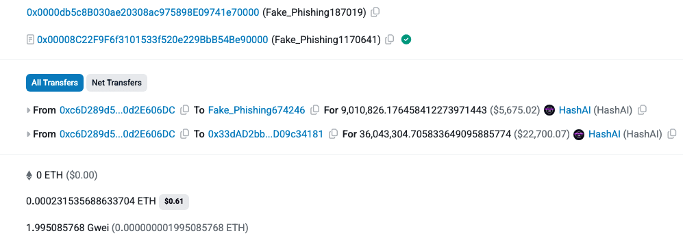 El 24 de mayo, la banda de phishing #InfernoDrainer utilizó la función de ejecución masiva del contrato 7702-Delagator de Metamask para engañar masivamente a los usuarios (0xc6D2…06DC) para que autorizaran tokens, llevando a cabo un ataque de phishing, con pérdidas superiores a $146,000 en $HashAI $HUMANS $ParallelAI $NeuralAI $DSync $Zero1 $NodeAI $Sensay $Virtual.