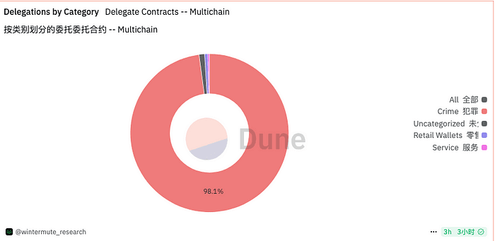 3. Según las estadísticas de WinterMute, actualmente el 98% de las autorizaciones EIP-7702 apuntan a múltiples contratos maliciosos Delegator, desde el caso uno que solo puede transferir automáticamente la moneda principal, hasta el caso dos que transfiere automáticamente la moneda principal y Token, el daño de este tipo de estafas está aumentando rápidamente. GoPlus insta a todos los proyectos relacionados con billeteras EVM, seguridad, DEX, etc., a prestar atención a los problemas de seguridad 7702 y a interceptar o alertar a los usuarios a tiempo para evitarlo.