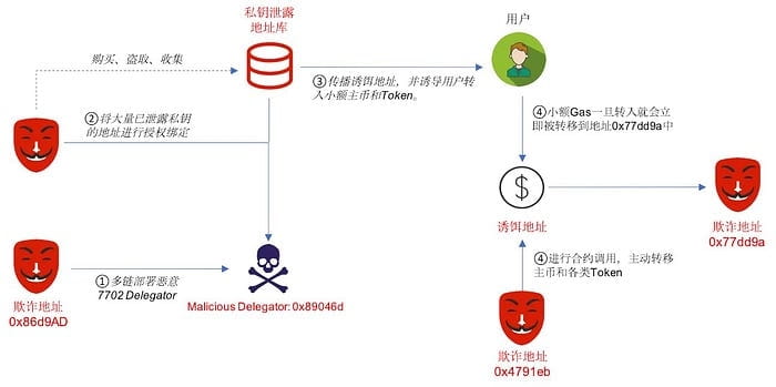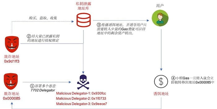 2. Al igual que la estafa de múltiples firmas de Tron y la estafa de cambio de permisos de Solana, utilizando direcciones con claves privadas filtradas, la pandilla fraudulenta está expandiendo este tipo de engaños en la cadena EVM basada en EIP-7702.