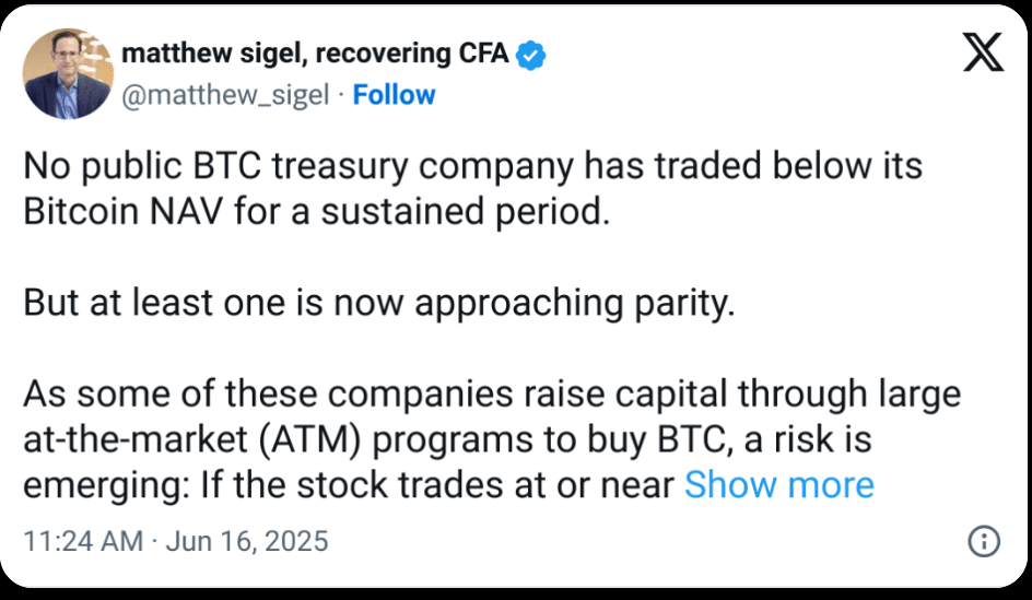 Según el analista de cripto de VanEck, las empresas que compran Bitcoin deben reevaluar sus posiciones, especialmente si sus tenencias de BTC comienzan a acercarse o superar su propia capitalización de mercado.