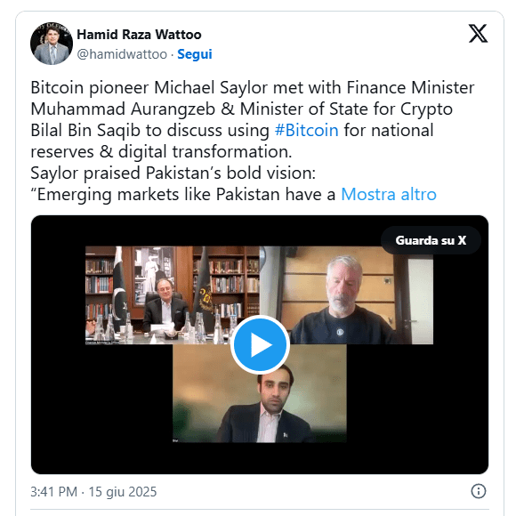 Saqib agregó que Pakistán debería seguir el ejemplo de Saylor y entrar en el mercado de Bitcoin.