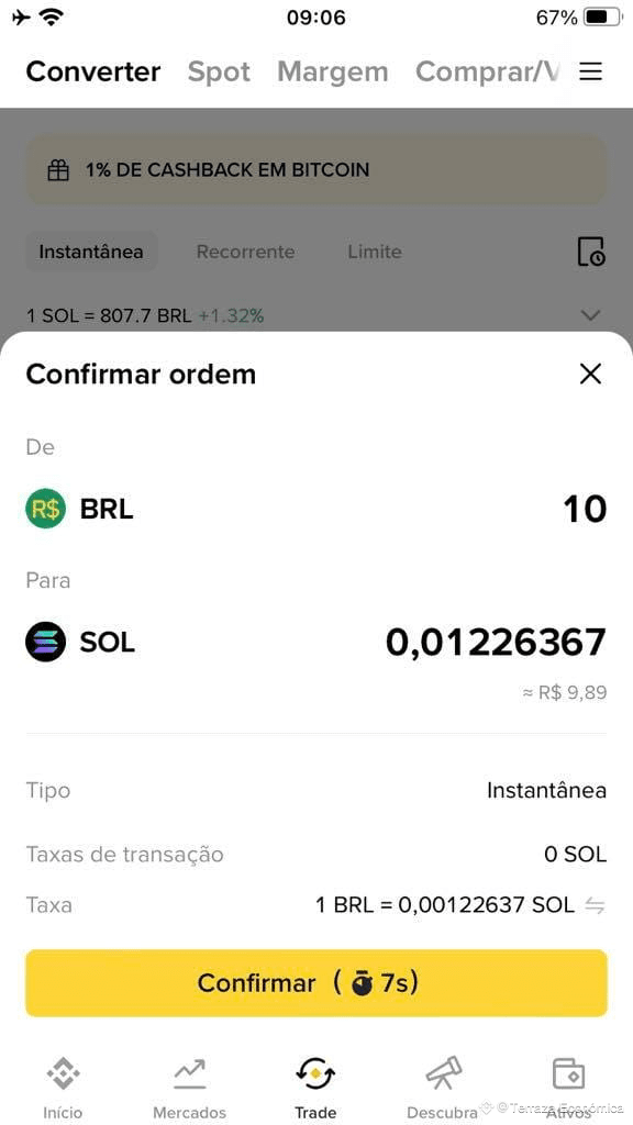 Binance: 0.01226 SOL por 10 BRL – ¡más ventajoso!