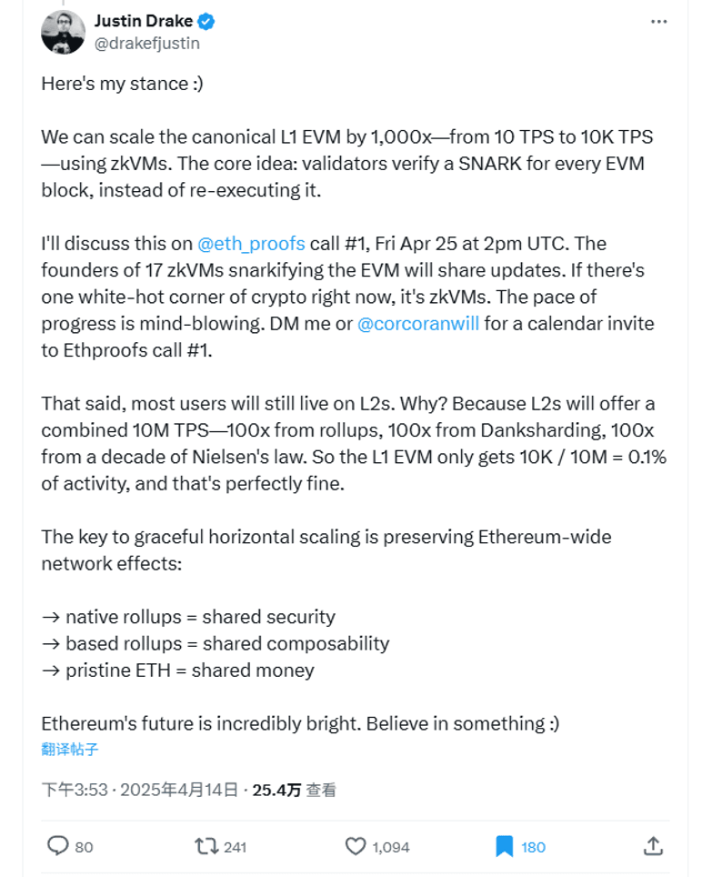 Según la opinión anterior de Drake, después de que ETH L1 se implemente completamente en ZK, el TPS podría aumentar hasta 1000.