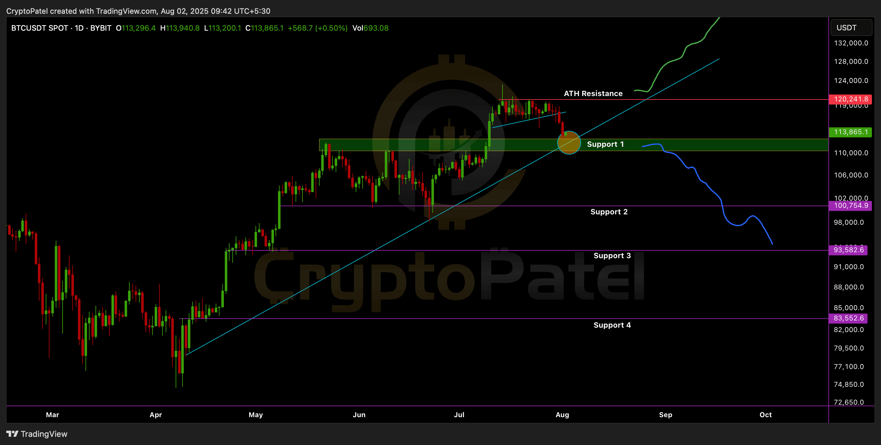 #Bitcoin está negociando cerca de $113,900, justo en el soporte clave de $112K–$110K.