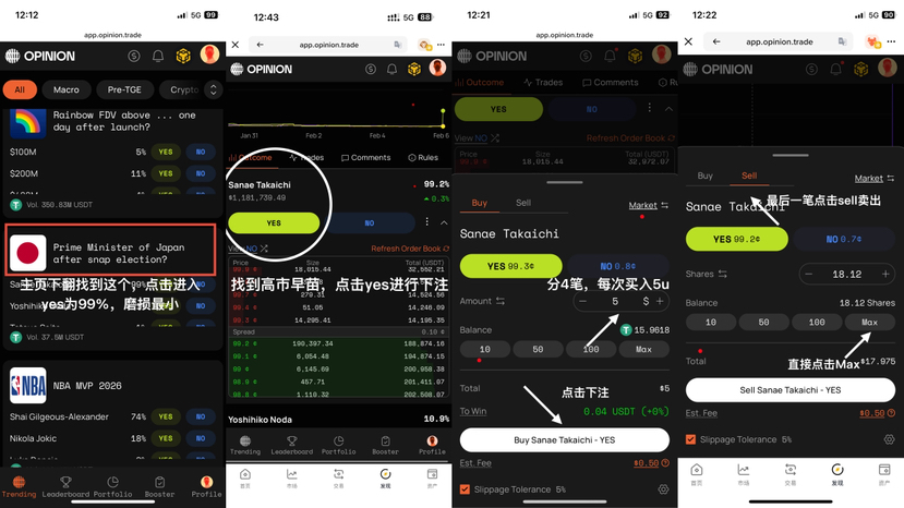 Paso 5: Encuentra la elección del Primer Ministro de Japón en la página principal y realiza la apuesta, sigue los pasos en la imagen a continuación, otros YES con un 99% también son aceptables, mínimo desgaste, se ha comprobado que es alrededor de 2.5u