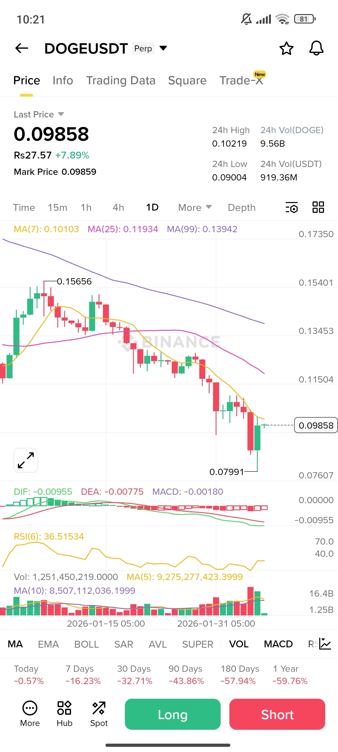Price is currently trying to reclaim 0.098 – 0.101 zone, which is short-term resistance + MA7 area.