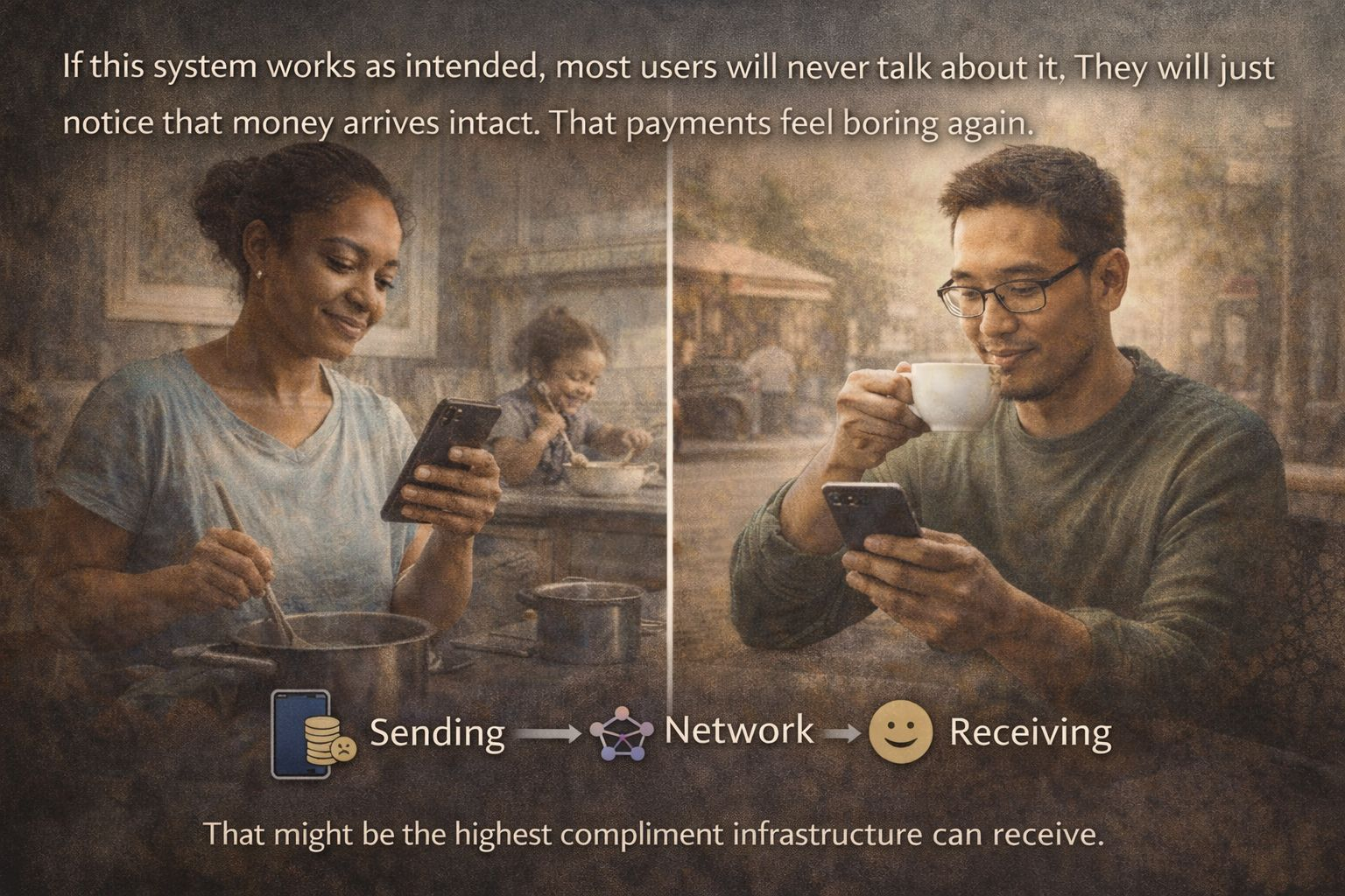 Si este sistema funciona como se pretende, la mayoría de los usuarios nunca hablarán de él. Simplemente notarán que el dinero llega intacto. Que los pagos vuelven a sentirse aburridos. Que enviar valor no viene con un aumento de ansiedad. Y eso podría ser el mayor cumplido que la infraestructura puede recibir.