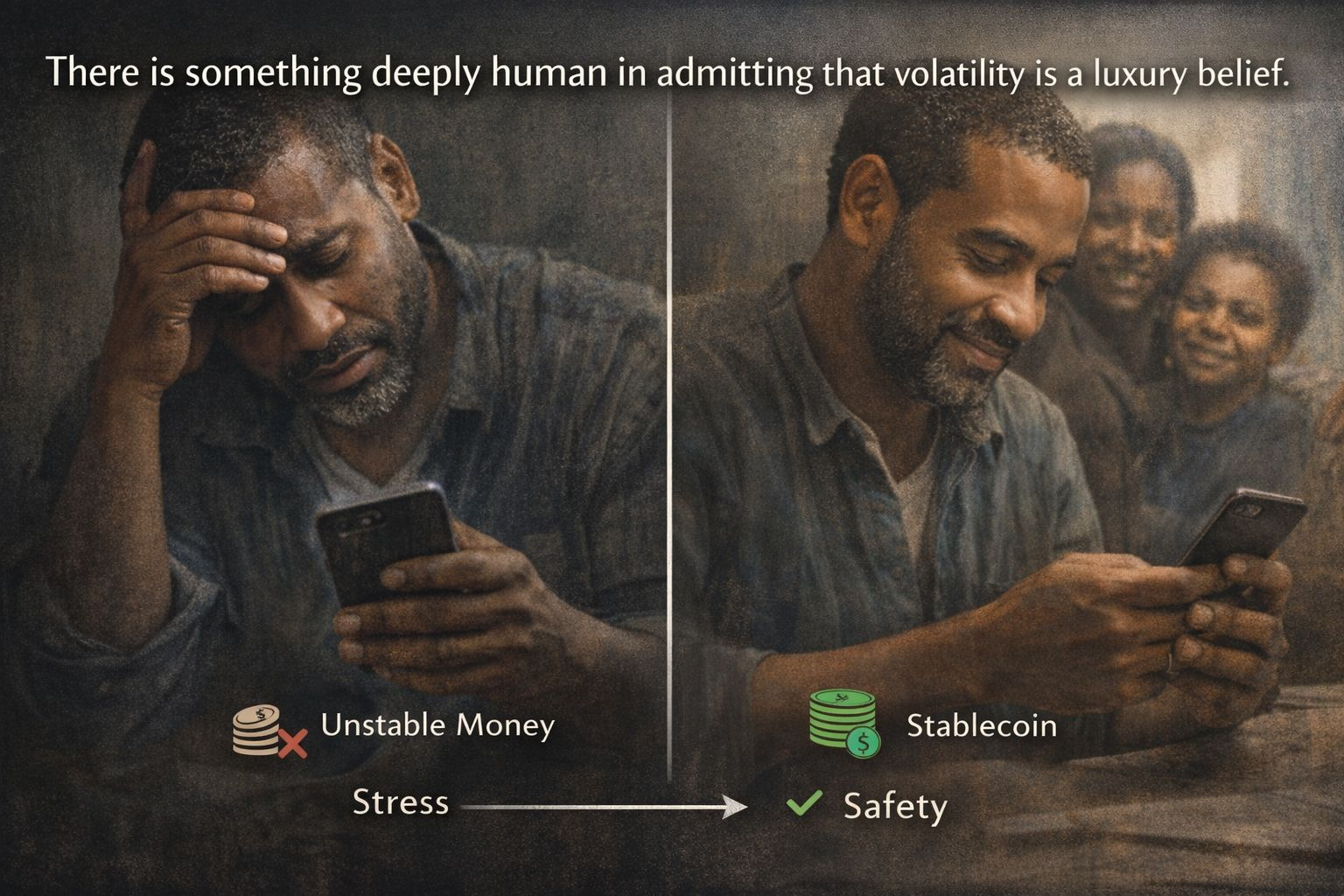 Hay algo profundamente humano en admitir que la volatilidad es una creencia de lujo. Si vives de cheque en cheque, si tus márgenes son delgados, si tus ingresos cruzan fronteras o dependen del tiempo, la imprevisibilidad no es emocionante, es peligrosa. Las stablecoins no se hicieron populares porque eran elegantes. Se hicieron populares porque eran sobrevivibles. Ofrecían una forma de entrar en el mundo digital sin arriesgar tus comestibles en la tabla de precios de mañana. Plasma toma esa verdad en serio. No trata las stablecoins como un puente temporal o un activo menor. Construye alrededor de ellas como si la vida de las personas realmente dependiera de ellas. Porque para muchos, sí.